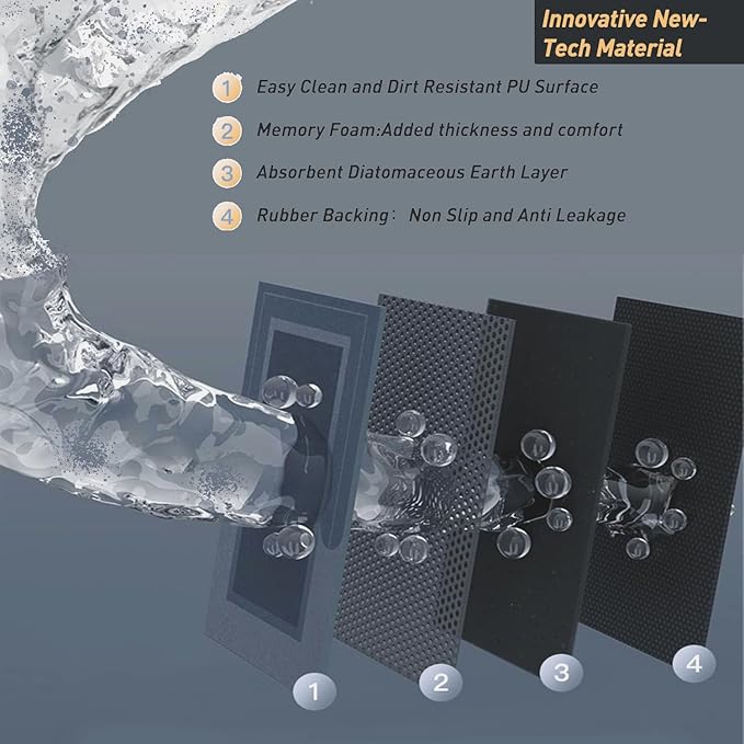 - 【Modernized Magic Mat – Comfortable & Cozy】 Thin, low-profile design reduces tripping hazards and fits easily under doors. Soft, skin-friendly surface keeps feet dry and comfortable after every shower.